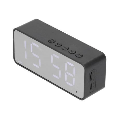 Battery Powered Digital Alarm Clock with Bluetooth with Speaker - Black