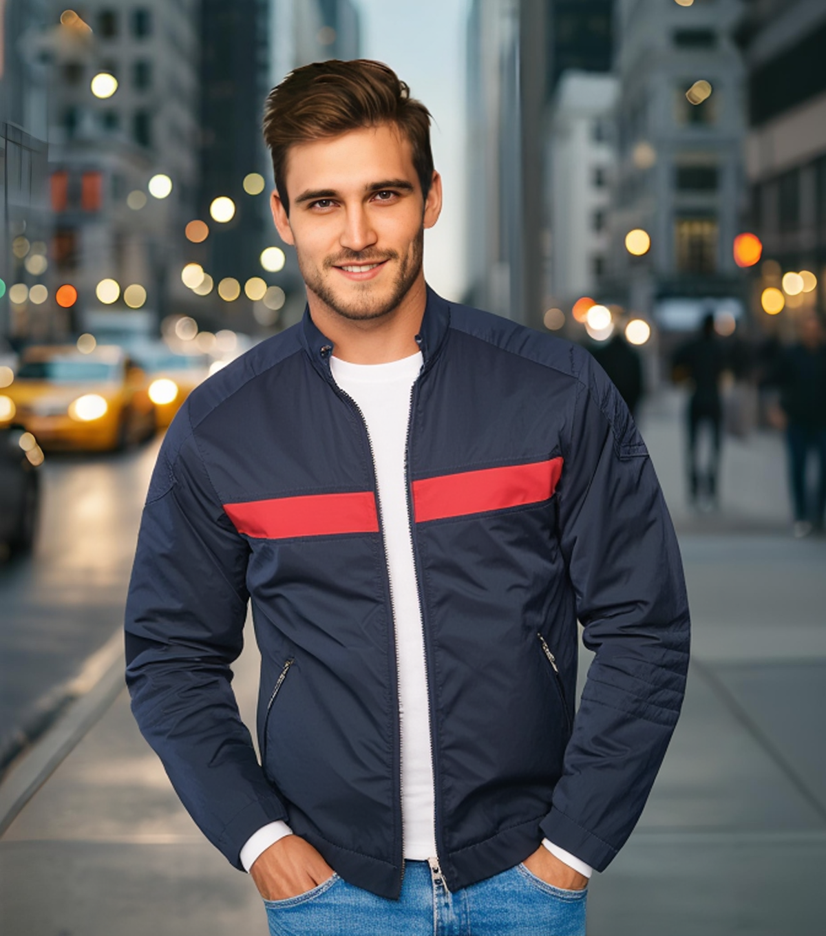 Upgrade your winter style with this Kilometer blue jacket for men, designed with a bold red vertical lining that adds a striking contrast. Crafted from premium, lightweight material, it offers excellent warmth and comfort without compromising on style. The jacket features a sleek zip-up front, functional pockets, and a modern fit that complements any casual or semi-casual look. Perfect for those who appreciate both comfort and standout design.