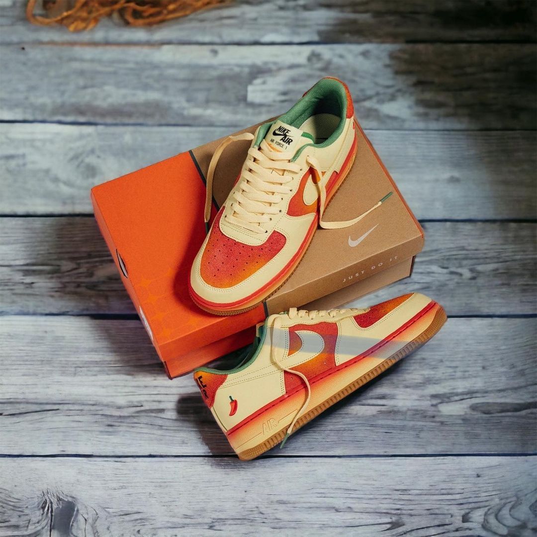 Introducing the Nike Air Force 1 "Chilli Pepper," a fiery interpretation of a sneaker classic that ignites style with a bold and spicy edge. The iconic Air Force 1 silhouette gets a flavorful update with a vibrant red hue reminiscent of the hottest chilli peppers. Crafted with premium materials, this sneaker combines a smooth leather upper with perforations for breathability, ensuring a comfortable and stylish stride. The distinctive Swoosh logo and classic Air sole unit contribute to the sneaker's timeless appeal, while the Chilli Pepper colorway adds an extra dash of personality to your look.