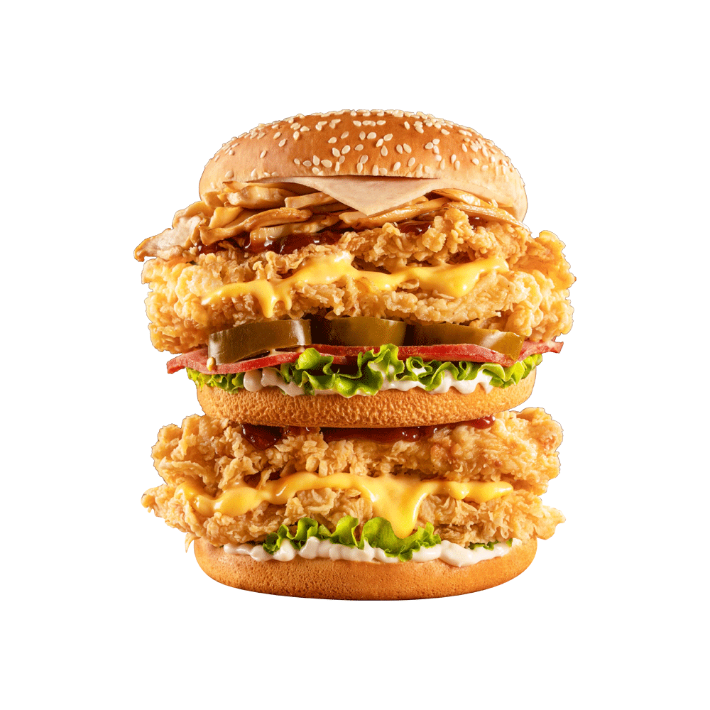 صدور دجاج + باربكيو + مايونيز + خس + لحم بقري + شريحه تركي مدخن + صوص شيدر + صوص ماشروم + صوص فاير + فلفل هالوبينو