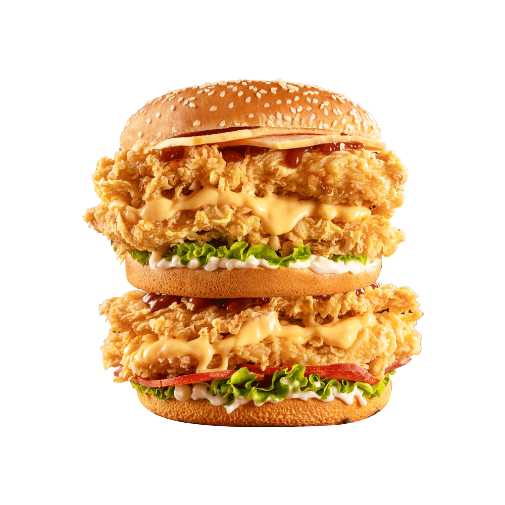 صدور دجاج + باربكيو + مايونيز + خس + لحم بقري + صوص شيدر + لحم بقري + لحم تركي مدخن