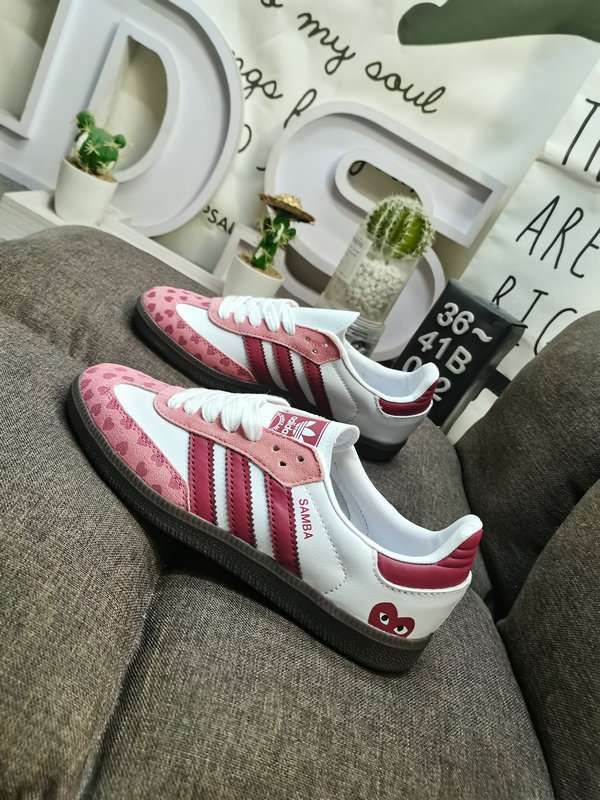 L’Adidas Samba x Comme des Garçons Play est une collaboration unique qui fusionne l’élégance minimaliste de Comme des Garçons avec l’héritage sportif de l’Adidas Samba. Ce modèle revisite l’emblématique silhouette Samba avec une esthétique contemporaine et artistique. On retrouve la tige classique en cuir et en daim, agrémentée de détails subtils propres à Comme des Garçons Play, comme le célèbre logo cœur rouge. Alliant style urbain et sophistication, cette édition limitée incarne le mélange parfait entre mode et fonctionnalité, idéale pour ceux qui recherchent une pièce à la fois iconique et moderne.
