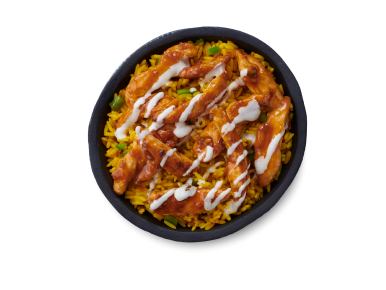 Grilled Chicken Strips on a bed of tasty Spicy Rice and Sishebo, topped with GaliMayo