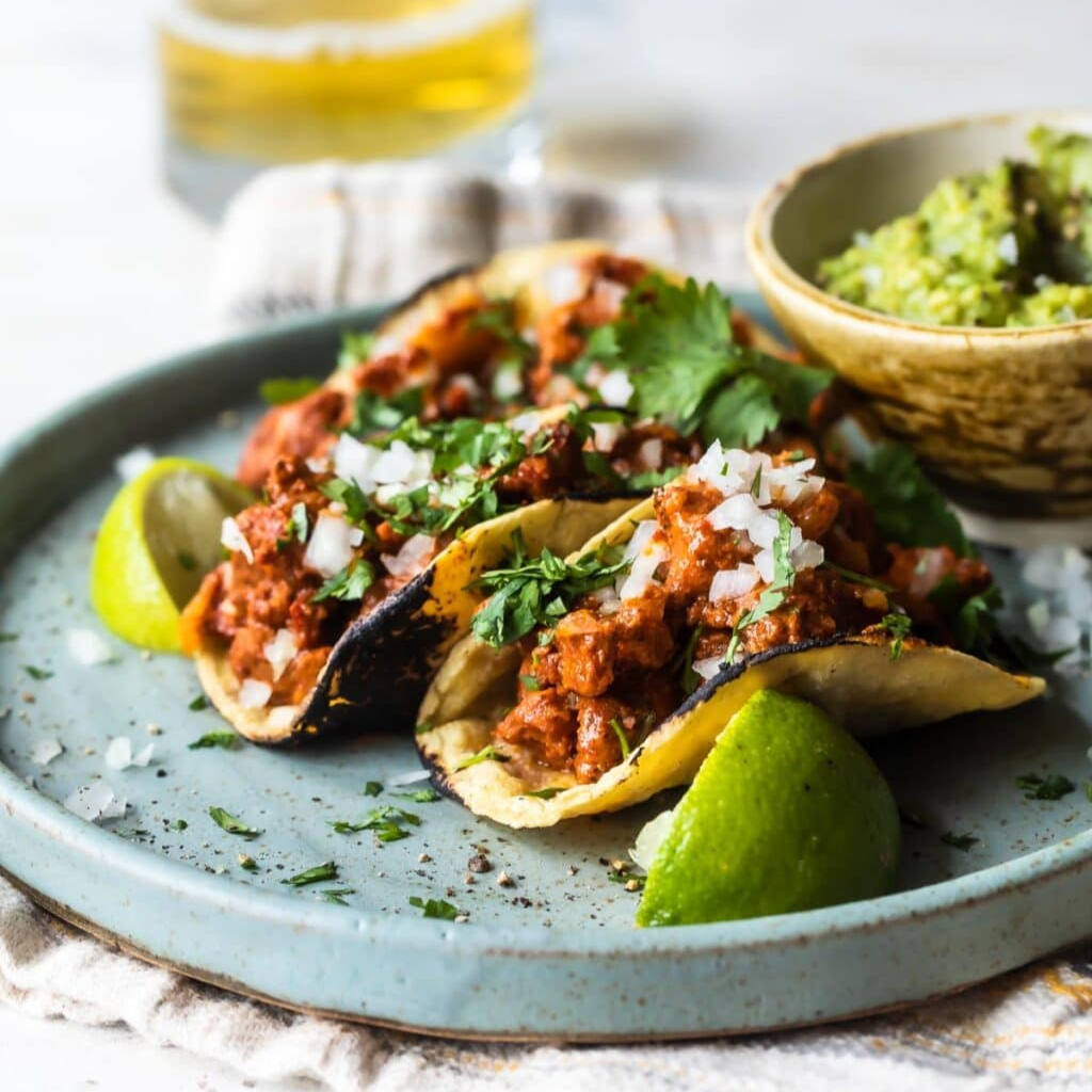 Taco de doble tortilla de maiz chica con 30 gramos de labio cocido y partido en cubos, con cilantro y cebolla