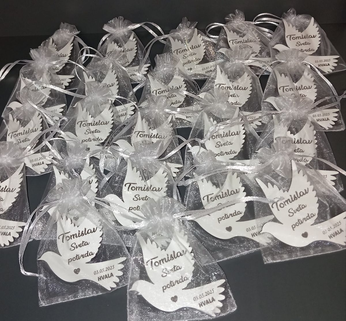 Tražite jedinstven način da zahvalite gostima na dolasku i podršci na krštenju, pričesti ili krizmi? Naše gravirane drvene zahvalnice izrađene su s puno pažnje i ljubavi, savršen su suvenir i trajna uspomena na vaš poseban dan.
