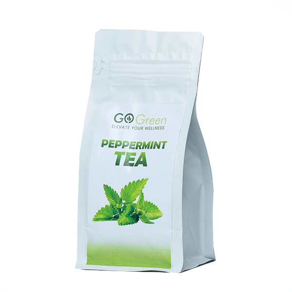 Peppermint tea is an herbal tea made from the leaves of the peppermint plant (Mentha × piperita). It has a refreshing, minty flavor and is naturally caffeine-free. People enjoy it for its soothing properties, and it's often used to aid digestion, relieve headaches, and help with relaxation.