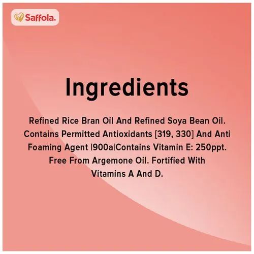 Saffola is a health care brand consisting of edible oils and foods. Saffola believes that a healthy lifestyle is key to a healthy body & heart. Saffola Active is a blended oil that helps you stay fit & active. It has a balanced profile of fatty acids (PUFA and MUFA) with the additional benefits of Omega 3, Oryzanol and Vitamin E. Saffola Active is a blend of 80% Refined Rice Bran Oil and 20% Refined Soyabean Oil.