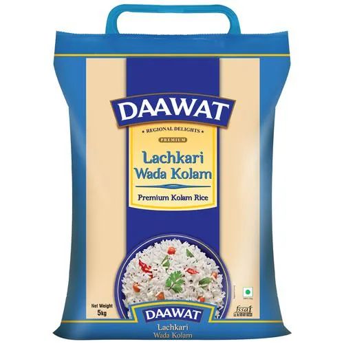 Daawat Lachkari Wada Kolam is premium quality rice for your favourite pulao. Kolam rice is short grain rice that is great for daily meals, as an accompaniment to your vegetable or meat preparations. The best part is its low glycemic index, which again makes it suitable for diabetics to consume. The Lachkari Kolam Rice goes well with any Asian stew or dal. This one is simple to prepare and truly aromatic. Explore a wide range of premium quality rice options from Daawat only on Big Basket.