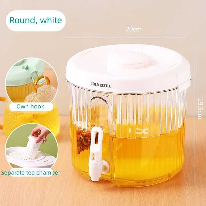Beverage Barrel Household Fruit Lemon Tea Juice Jug Barrel 3.9L Refrigerator Plastic Round Cold Water Kettle with Faucet Tap