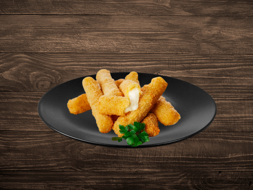 Golden-fried mozzarella sticks with molten cheese centers—crispy outside, gooey inside!
