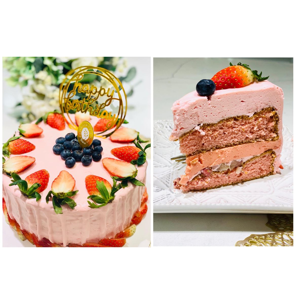 Layer soft chiffon cake with strawberry 𝓬𝓾𝓼𝓽𝓪𝓻𝓭 centre on h⃨o⃨m⃨e⃨m⃨a⃨d⃨e⃨ real strawberry compote and fruit filling, topped with fresh Chantilly cream all around. Using in-season fresh berries!