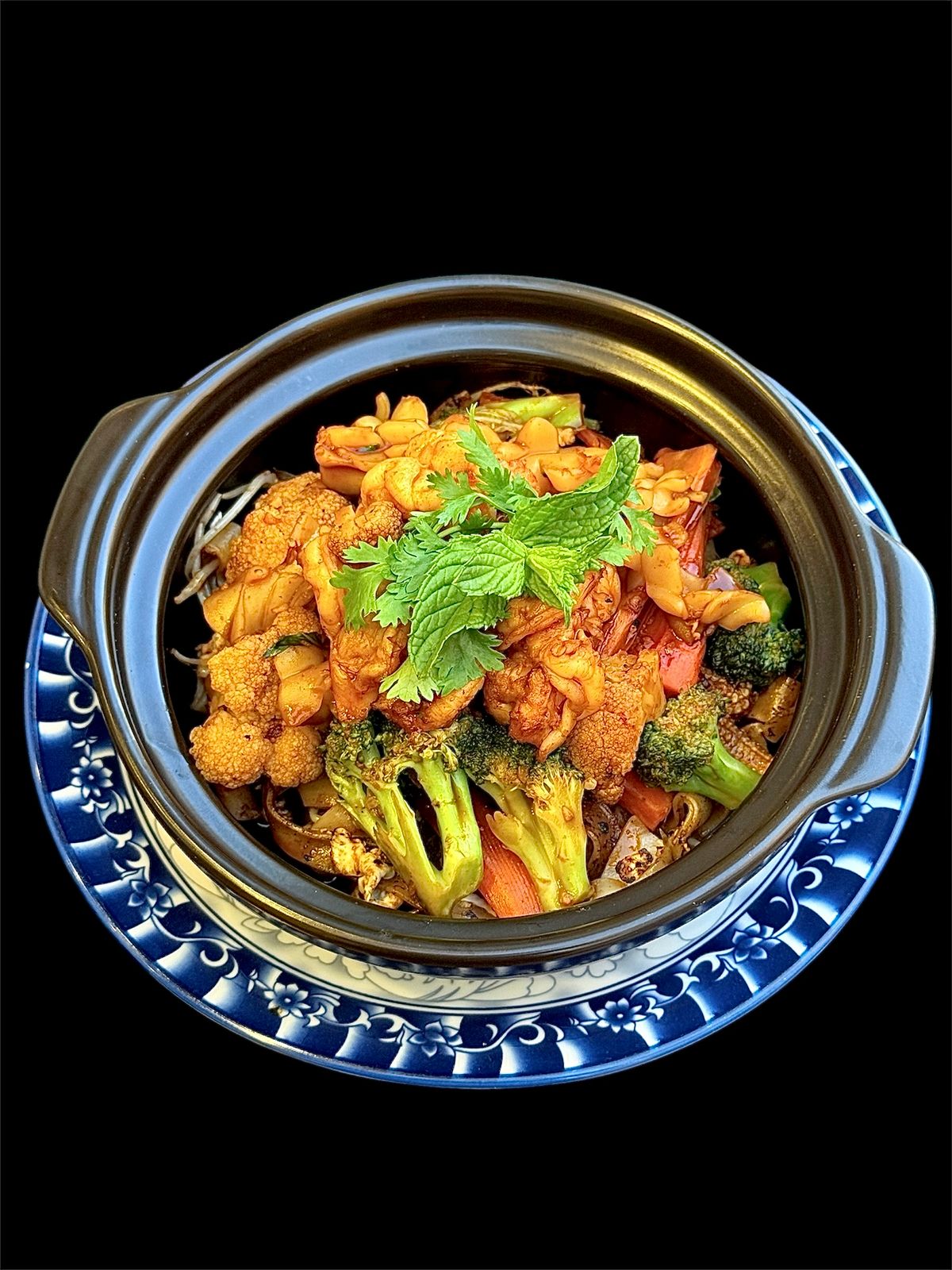 Selection of the wok fried rice noodles/ egg noodles with squid and shrimp/ beef/ chicken or vegan with special homemade sauce.