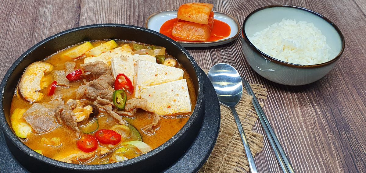 As you know, soybean paste stew goes well with rice.