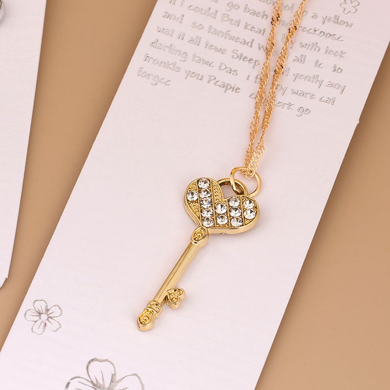 Full Diamond Love Key Water Ripple Necklace