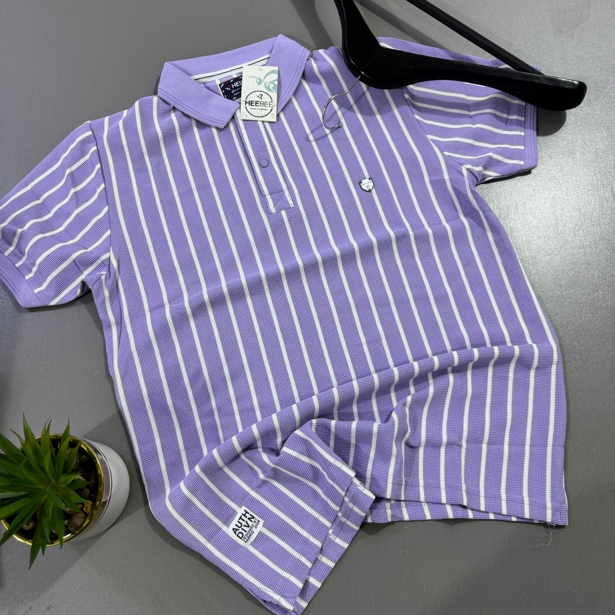HEEBEE VERTICAL SPRIPPED POLO SHIRT - PURPLE