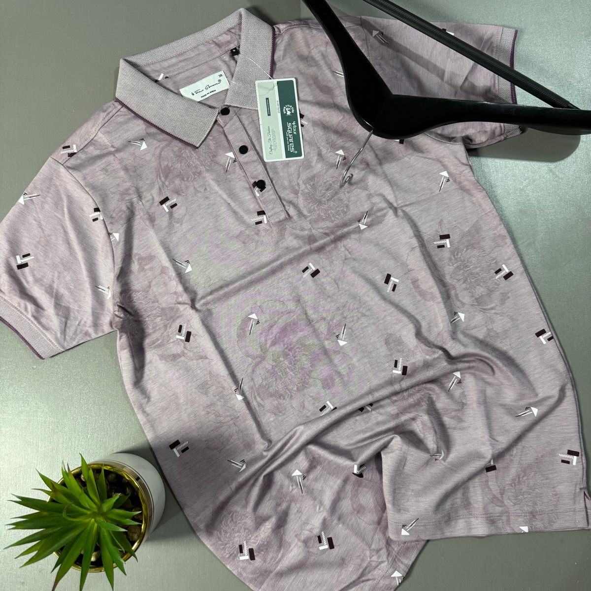 FOUR SQUARES PATTERNED POLO SHIRT- LAVENDER