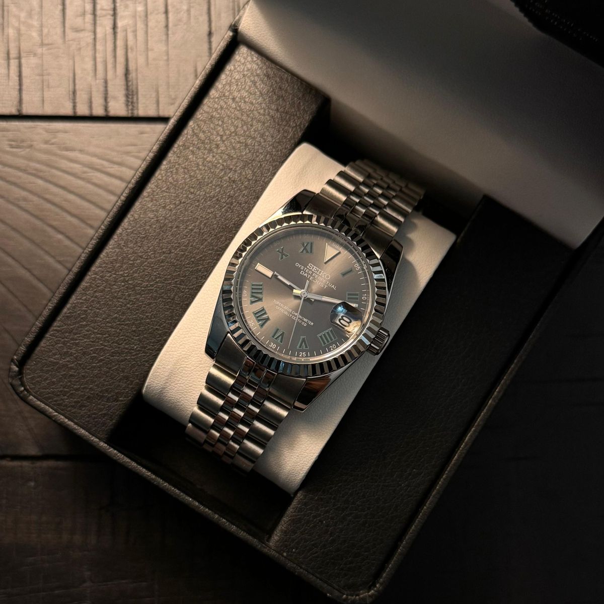 Automatic Seiko NH35 movement, with additional hand-winding and hacking, the premium version of the caliber made in Japan, 24 Jewels, 21,600 bph, 41 hours of power reserve, and a bi-directional rotor, for an advanced automatic movement made to run a lifetime.