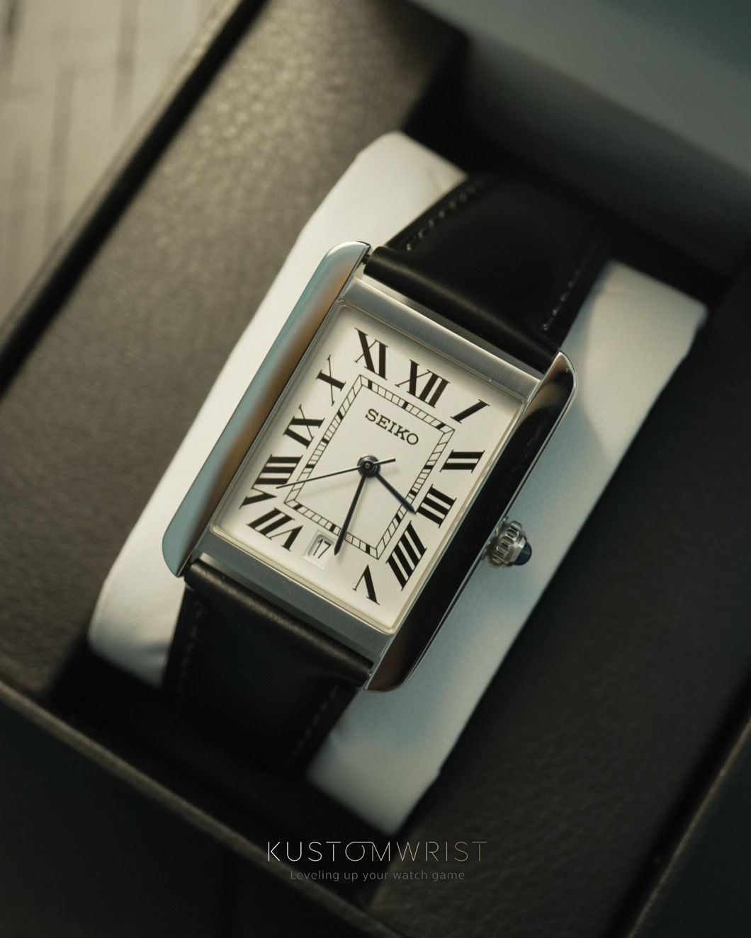 40mm diameter, 904L stainless steel case + iconic leather strap, for a watch that feels and looks luxurious.