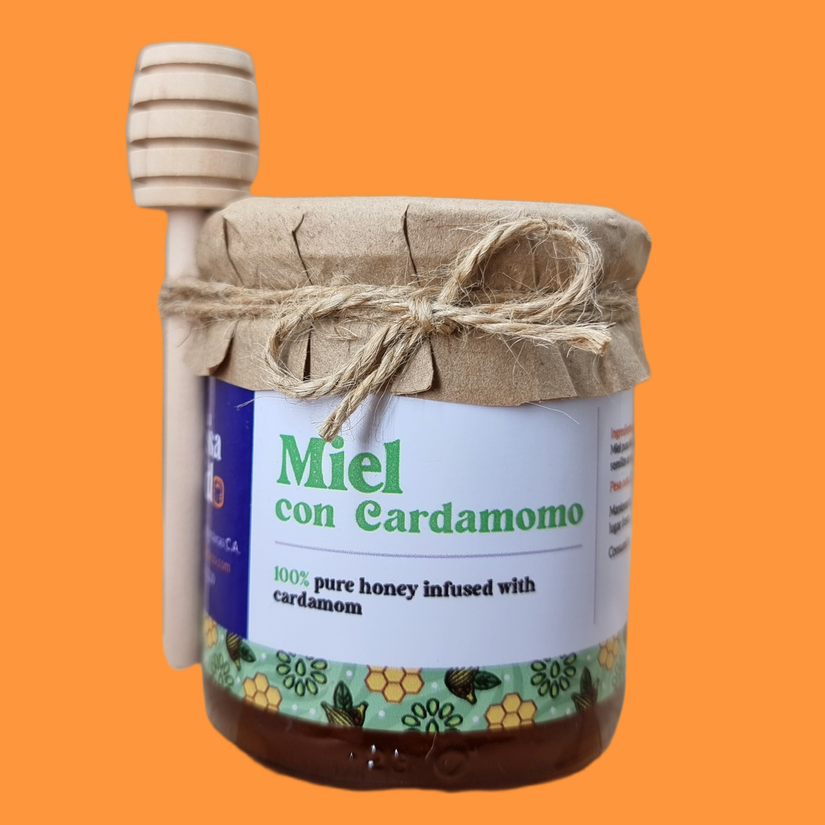 Miel pura, infusionada artesanalmente en Copán Ruinas con cardamomo, ofreciendo una mezcla exótica y aromática. El suave toque especiado y dulce del cardamomo complementa perfectamente la suavidad natural de la miel, creando un condimento único ideal para infusiones, postres, batidos o disfrutar directamente a cucharadas, brindando una experiencia de sabor sofisticada y reconfortante.