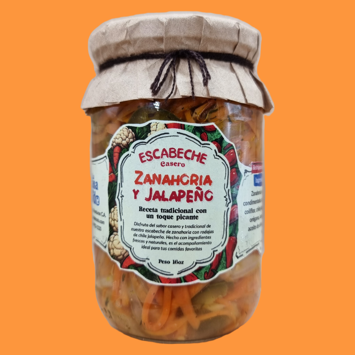 Escabeche artesanal de zanahoria y jalapeño, elaborado en Copán Ruinas con ingredientes frescos y especias cuidadosamente seleccionadas. Su balance perfecto entre sabor y picante lo convierte en el acompañamiento ideal para realzar tus comidas favoritas. ¡Calidad y tradición en cada frasco!