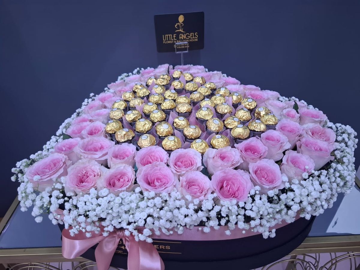 FLOWERS - 50 Premium Pink Roses and Baby breath