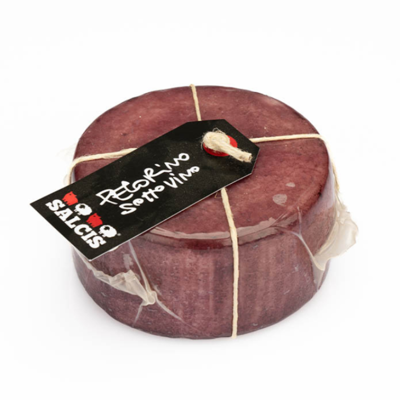 Pecorino al Mosto is an Italian sheep's milk cheese aged with a unique twist—it is wrapped and matured in grape must, giving it a distinctive wine-infused character. The cheese has a firm yet creamy texture, with the grape must adding a fruity aroma and subtle hints of wine that perfectly balance the savory, tangy flavor of the Pecorino. The result is a complex and delicious cheese with an attractive purple rind, ideal for pairing with red wine, adding to a cheese board, or enjoying with fresh bread for a gourmet experience.