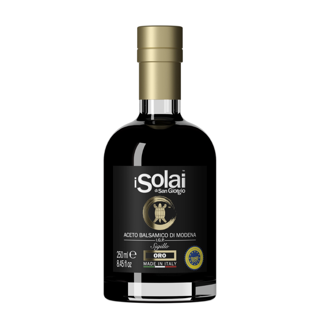 I SOLAI Balsamic Vinegar of Modena Sigillo Oro is a premium, expertly aged balsamic vinegar from Modena, Italy. With a rich, well-balanced flavor that combines sweetness and acidity, it is aged to perfection, offering a smooth and complex taste. The Sigillo Oro label represents its exceptional quality, making it ideal for drizzling over salads, roasted meats, cheeses, or even strawberries. Its luxurious profile elevates any dish, perfect for gourmet cooking and refined culinary experiences.