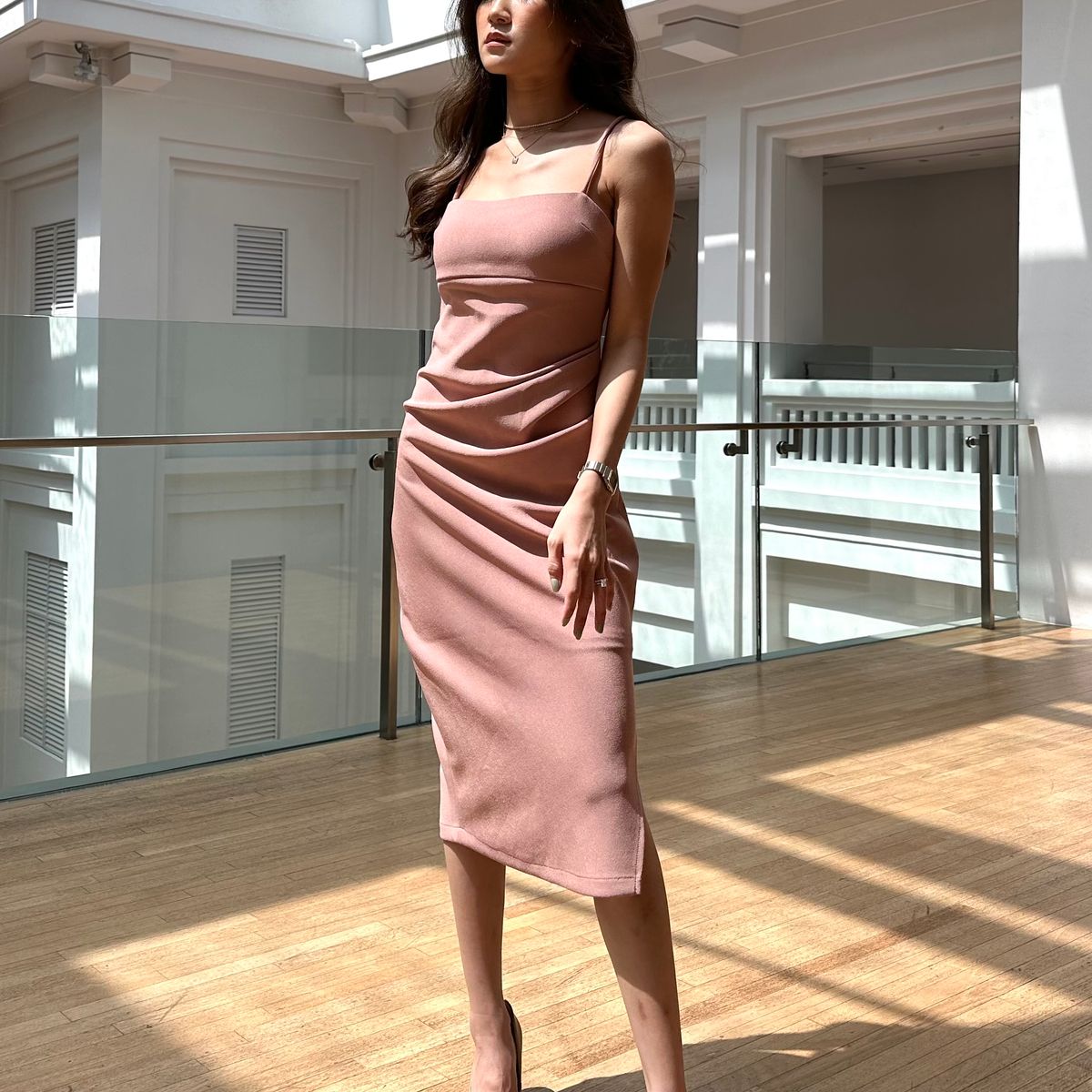 RUCHED DRESS (DUSTY PINK)