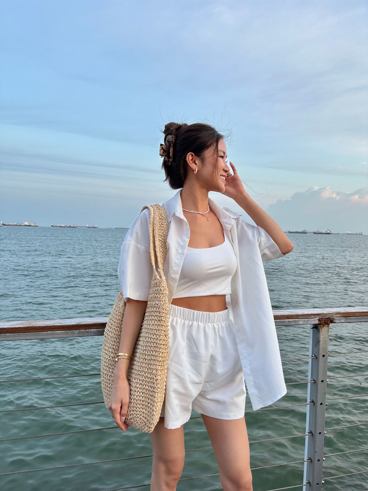 • Button down shirt, Stretchable elastic band shorts