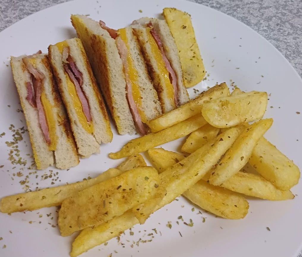 BACON,CHEESE TOASTED & CHIPS (10MM CHIPS)
