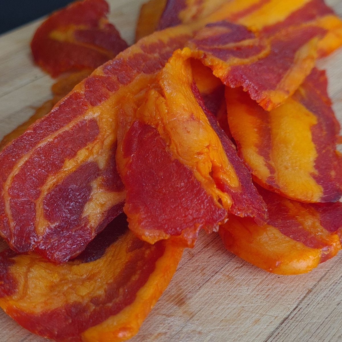 Our Biltong Bacon is a unique twist on tradition – made from premium pork and seasoned with our signature biltong spice blend. It’s then air-dried to perfection, offering a rich, savoury flavour with a slightly smoky finish. Enjoy it as-is or add extra spices to make it your own.