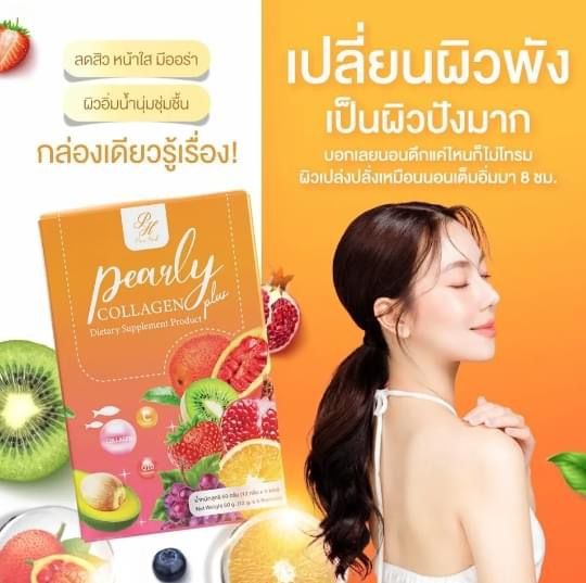 Pearly collagen plus Pearly Collagen Plus 5 sachets Collagen Pearly PureHerbs "Fruit Flavor" - Helps skin to be clear, smooth, soft - Restores skin to be radiant - Skin looks younger - Healthy skin with aura - Nourishes nails, nourishes hair to be strong.