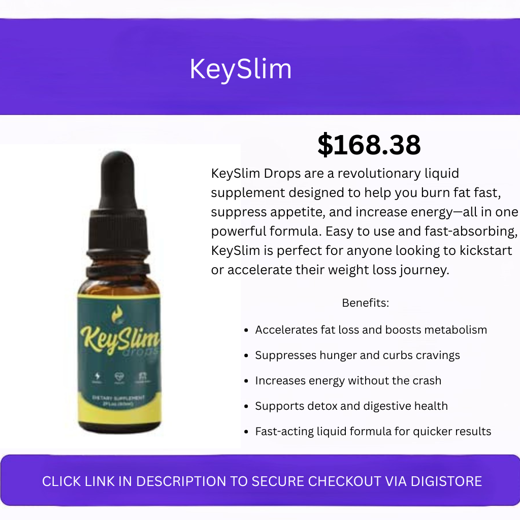 Product Description BelowKeySlim Drops are a revolutionary liquid supplement designed to help you burn fat fast, suppress appetite, and increase energy—all in one powerful formula. Easy to use and fast-absorbing, KeySlim is perfect for anyone looking to kickstart or accelerate their weight loss journey. Click here to order via secure link