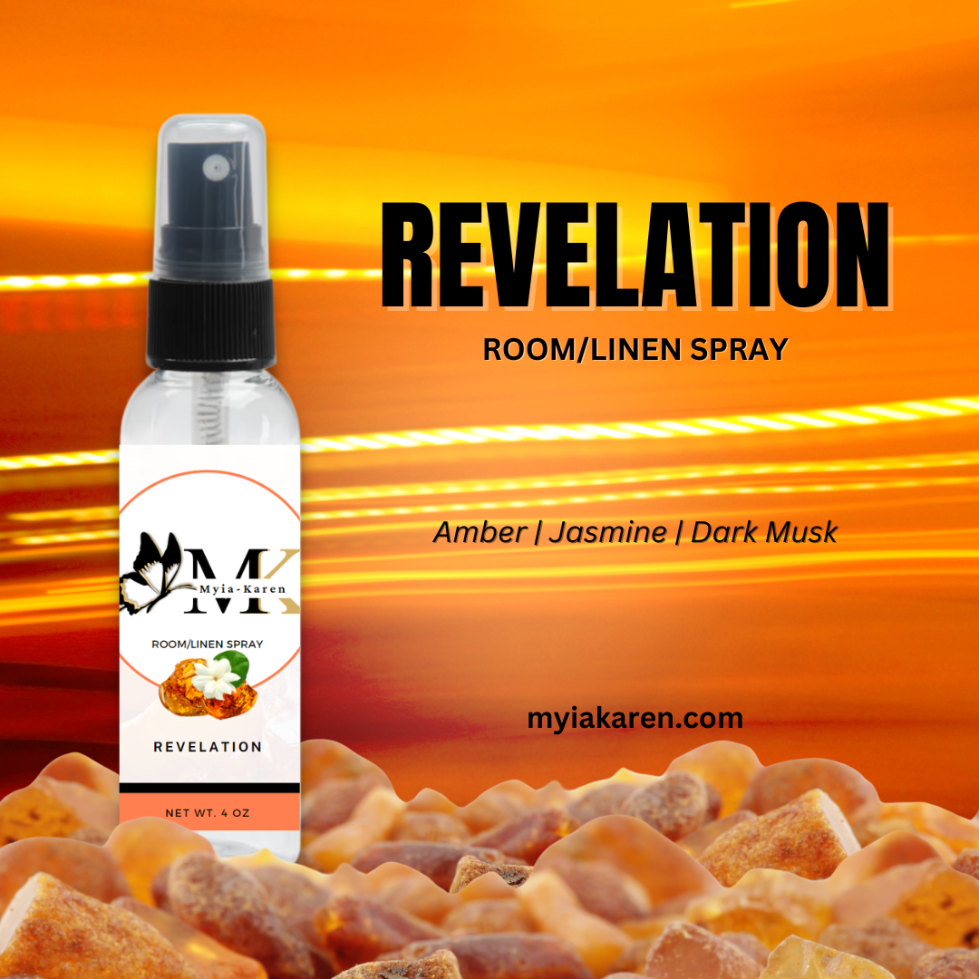 Enhance the aroma of your home or car with our Revelation Room/Linen Spray that has a natural odour eliminator and a fragrance that lasts for hours.