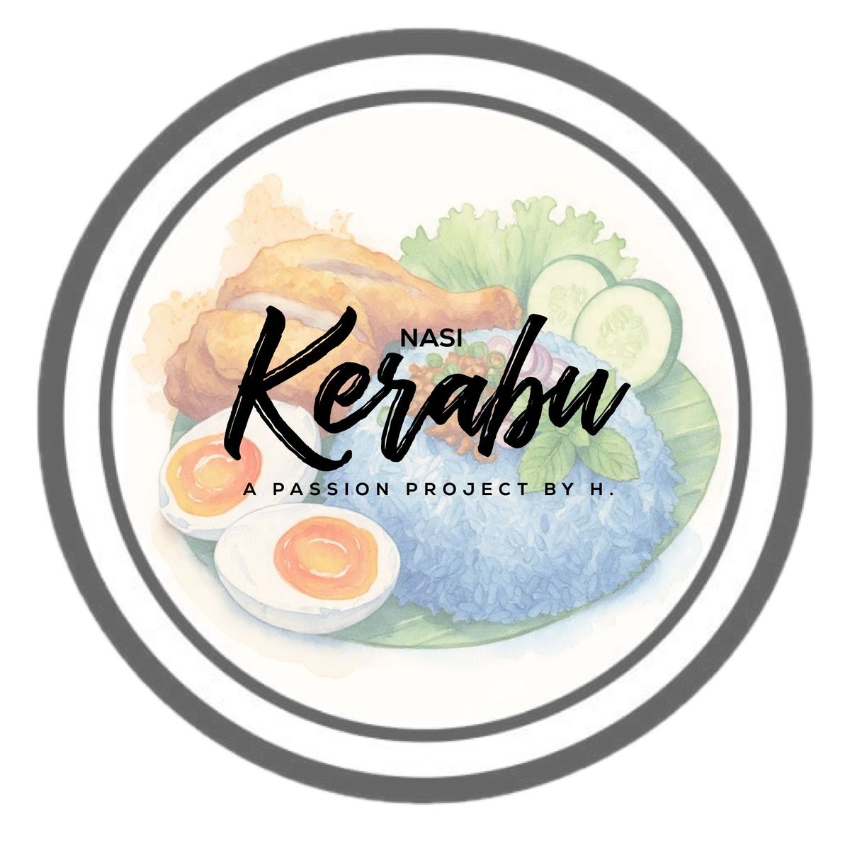 Nasi Biru Bunga Telang for 2 Ayam Percik (contains candlenut): L-shaped chicken thigh Solok Lada (contains fish) - 2 pieces of Solok Lada per customer Kuah Sambal Tumis (budu, a key ingredient, contains anchovies) Serunding Kelapa Ikan (contains fish) Air Lada (contains belacan) Ulam-ulaman Keropok Ikan (contains fish) 1/2 Telur Asin - 2x