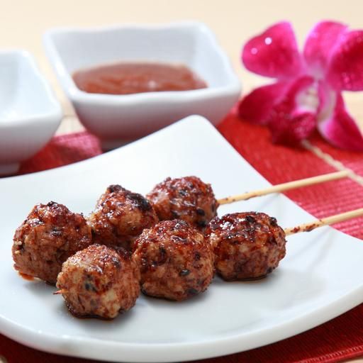 つくね Chicken meat balls with sauce.