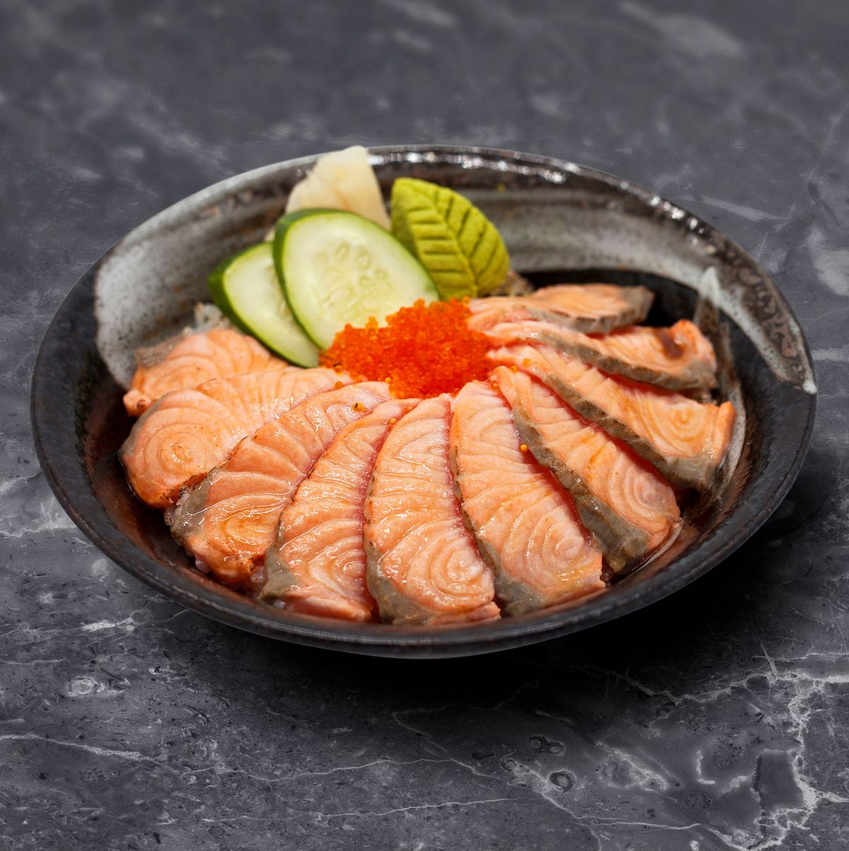 Salmon brushed with Japanese sweet Soya sauce, slightly torched and topping with Tobikko.