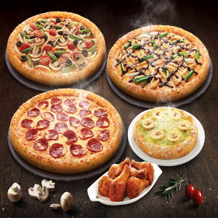Served with 3 regular pizza + 1 bread side+ 1 chicken side