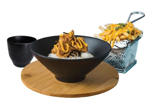 Kids meals that comes with rice topped with cheesy fried chi-ken & cheesy fries