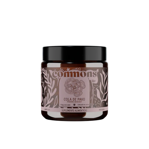 Cont. Neto. Frasco con 50 g de Extracto en Polvo de cuerpo fructífero de Hongo Cola de Pavo. Doble extracción con agua y alcohol con al menos 30% polisacáridos y al menos 25% de Betaglucanos.