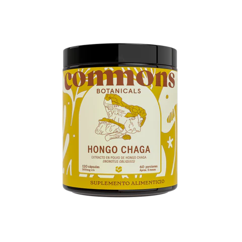 Cont. Neto. Frasco con 120 Cápsulas de 500 mg c/u de Extracto en Polvo de cuerpo fructífero de Hongo Chaga 100% Orgánico. Doble extracción con agua y alcohol con al menos 30% polisacáridos y al menos 25% de Betaglucanos.