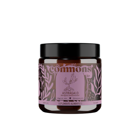 Cont. Neto. Frasco con 50 g de Extracto en Polvo de raíz de Astrágalo. Con >0.5-1% astragalósido IV.