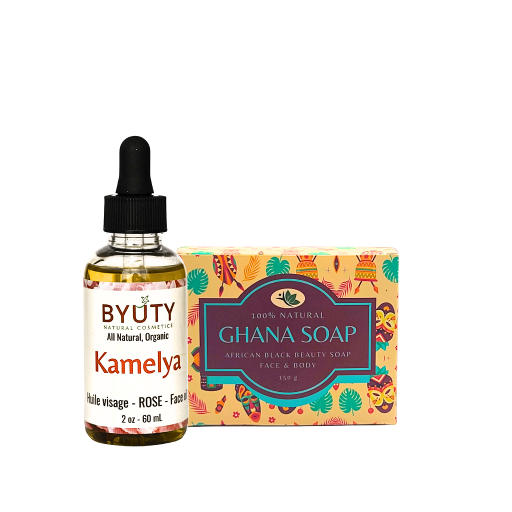 Le package Savon Noir Africain Ghana + Kamelya Rose est conçu pour une peau douce, purifiée et éclatante. Ce duo combine le pouvoir nettoyant et purifiant du savon noir avec les bienfaits nourrissants et revitalisants de l'huile Kamelya Rose. Parfait pour les peaux qui recherchent une hydratation intense et un éclat naturel, ce combo est idéal pour raviver le teint et lisser la texture de la peau.