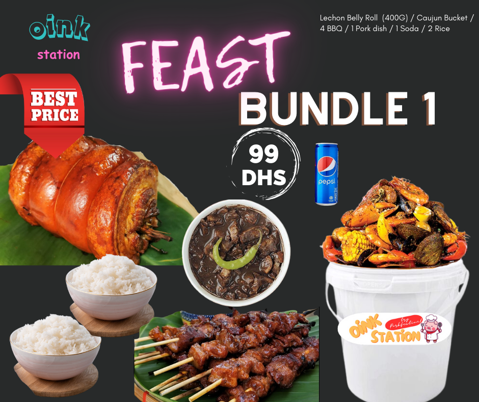 400G BELLY / CAJUN / 5PCS BBQ / 1 PORK DISH (CHOOSE 1 PORK DISH) / 2 RICE / FREE SMALL SODA