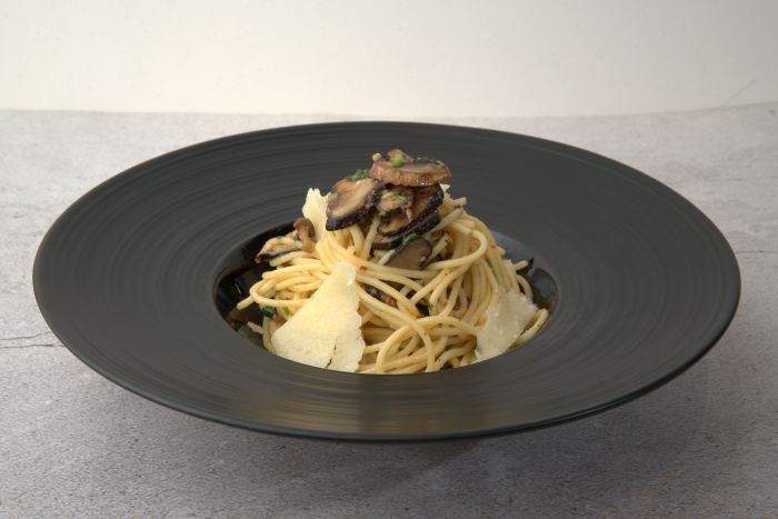 spaghetti, shiitake, honshimeiji, button, chili flakes, garlic, parsley, hint of truffle oil