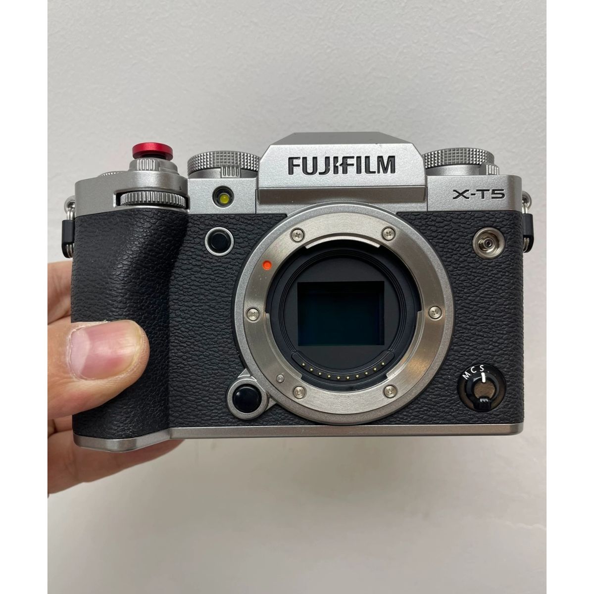 Silver Fujifilm X-T5 camera body with minor paint loss. Never repaired or modified. Sensor professionally cleaned and in pristine condition. Includes essential accessories for immediate use.