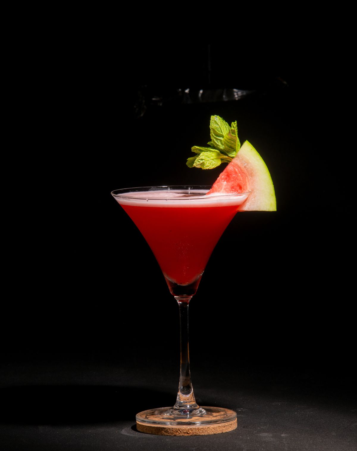Tanqueray, Fresh Watermelon, Passion Fruit, Mint Leaves.