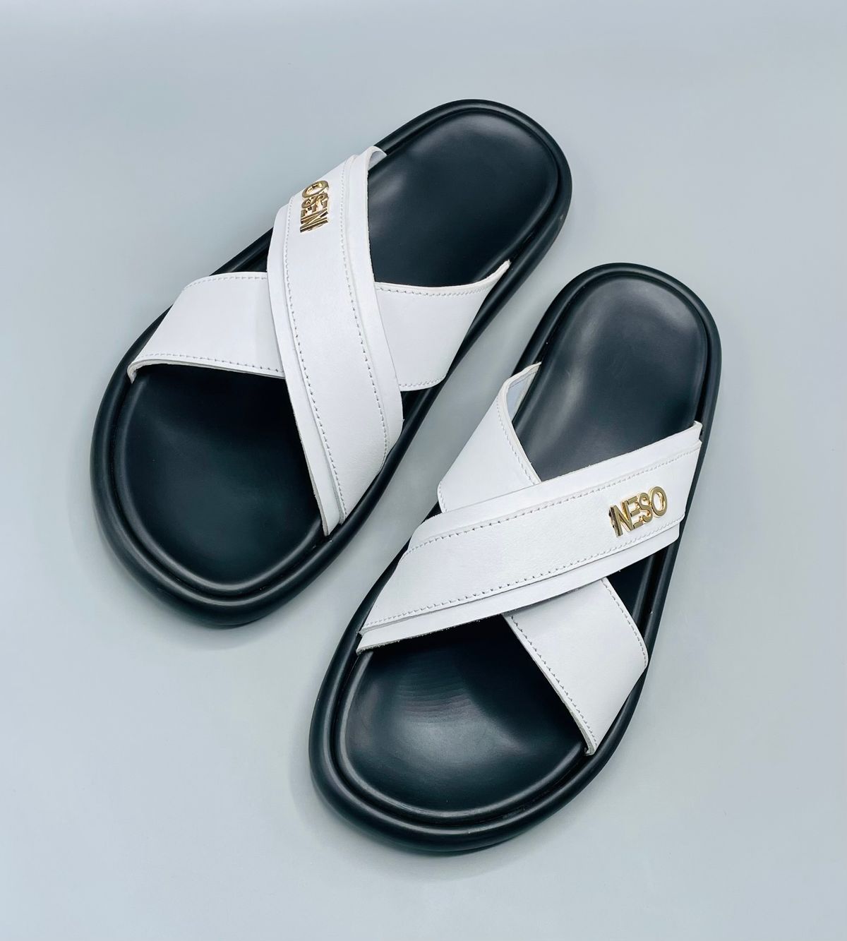 Men’s cross white leather slippers