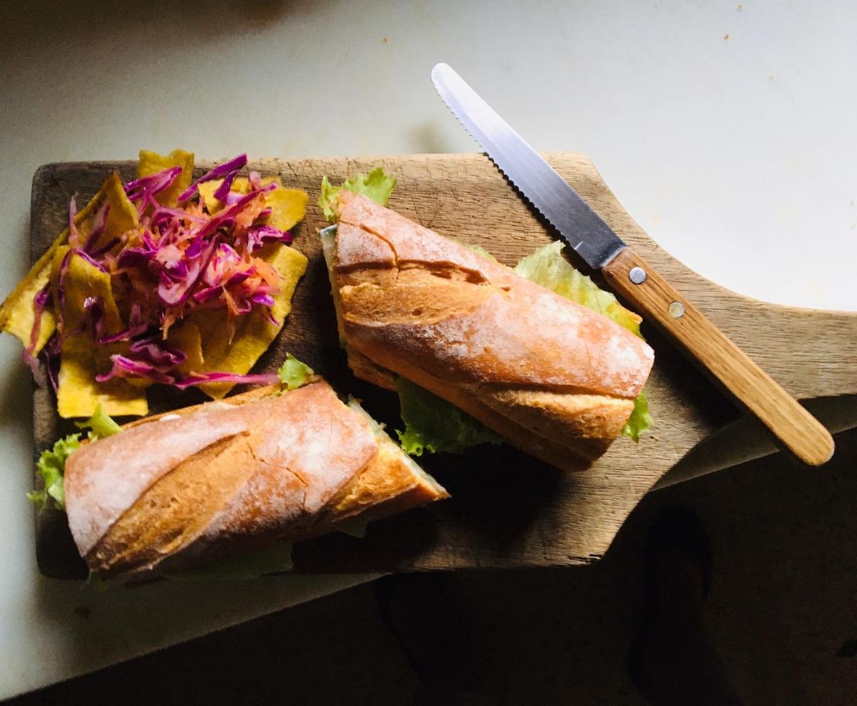 Nuestra ensalada de atún, aceitunas negras, tomate, cebolla morada, lechuga