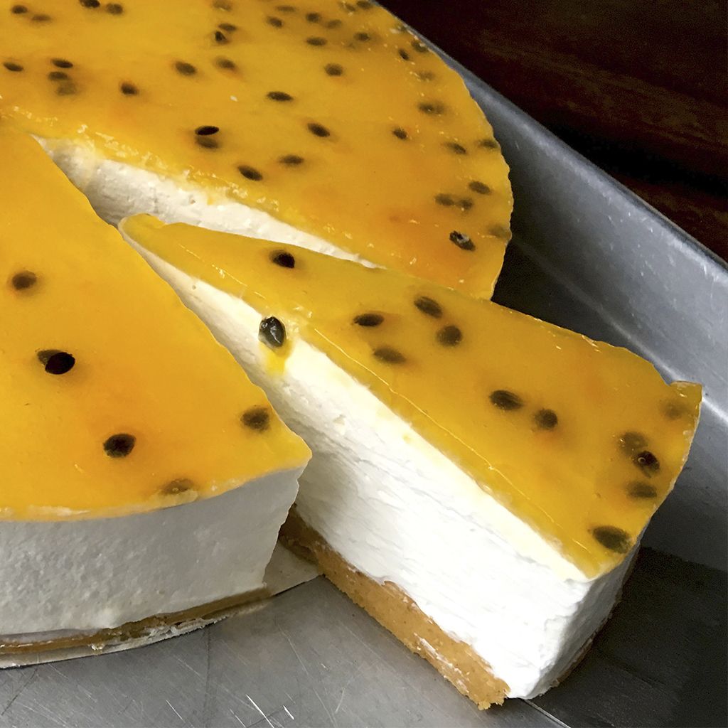 Nuestra tarta de queso (o cheesecake) sin hornear con maracuyá, o en temporada de pitahaya